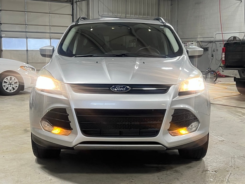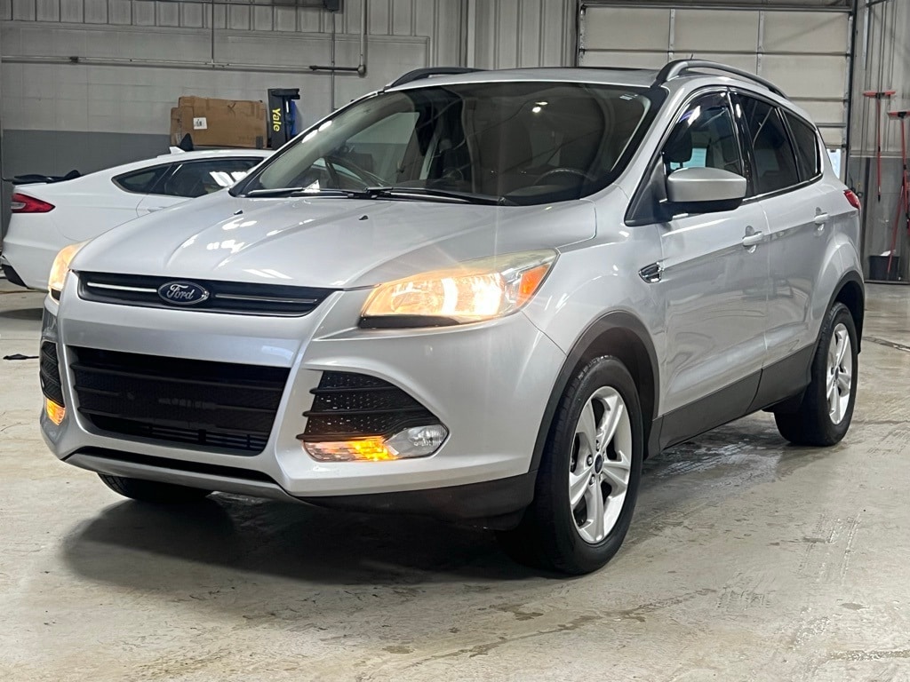 Vehicle Is Equipped With Equipment Group 201A (Radio: Media Hub w/SYNC w/MyFord Touch and SYNC w/MyFord Touch & SYNC Services), SE Convenience Package (Black Roof Side Rails, Dual Zone Electronic Automatic Temperature Control, Perimeter Alarm, Power Converter 110V Outlet, and Reverse Sensing System), Escape SE, 4D Sport Utility, EcoBoost 2.0L I4 GTDi DOHC Turbocharged VCT, 6-Speed Automatic, AWD, Ingot Silver, Charcoal Black w/Cloth Buckets w/60/40 Split Rear Seat, 3.51 Axle Ratio, 4-Wheel Disc Brakes, 6 Speakers, ABS brakes, Air Conditioning, Alloy wheels, AM/FM radio: SiriusXM, Brake assist, Bumpers: body-color, CD player, Cloth Buckets w/60/40 Split Rear Seat, Compass, Delay-off headlights, Driver door bin, Driver vanity mirror, Dual front impact airbags, Dual front side impact airbags, Electronic Stability Control, Exterior Parking Camera Rear, Four wheel independent suspension, Front anti-roll bar, Front Bucket Seats, Front Center Armrest, Front fog lights, Front reading lights, Fully automatic headlights, Illuminated entry, Knee airbag, Low tire pressure warning, Occupant sensing airbag, Outside temperature display, Overhead airbag, Overhead console, Panic alarm, Passenger door bin, Passenger vanity mirror, Power door mirrors, Power driver seat, Power Panorama Roof, Power steering, Power windows, Radio data system, Radio: AM/FM Single CD/MP3, Rear anti-roll bar, Rear seat center armrest, Rear window defroster, Rear window wiper, Remote keyless entry, Speed control, Speed-sensing steering, Split folding rear seat, Steering wheel mounted audio controls, SYNC Communications & Entertainment System, Tachometer, Telescoping steering wheel, Tilt steering wheel, Traction control, Trip computer, Variably intermittent wipers, and Wheels: 17" Alloy Sparkle Silver Painted Aluminum.