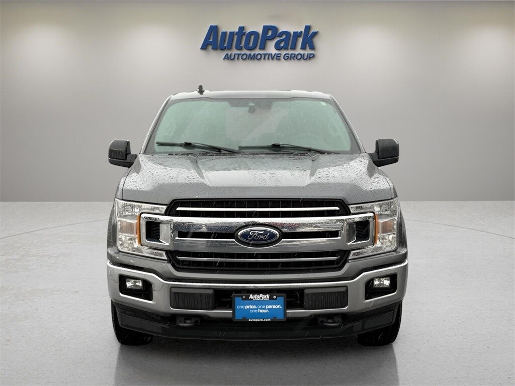 Vehicle Is Equipped With Equipment Group 300A Base, GVWR: 6,600 lbs Payload Package, F-150 XLT, 4D SuperCrew, 2.7L V6 EcoBoost, 10-Speed Automatic, 4WD, Magnetic Metallic, Dark Earth Gray w/Cloth 40/20/40 Front Seat, 3.55 Axle Ratio, 4-Wheel Disc Brakes, 6 Speakers, ABS brakes, Air Conditioning, Alloy wheels, AM/FM radio, AppLink/Apple CarPlay and Android Auto, Auto High-beam Headlights, Brake assist, Bumpers: chrome, Cloth 40/20/40 Front Seat, Compass, Delay-off headlights, Driver door bin, Driver vanity mirror, Dual front impact airbags, Dual front side impact airbags, Electronic Stability Control, Emergency communication system: SYNC 3 911 Assist, Extended Range 36 Gallon Fuel Tank, Exterior Parking Camera Rear, Front anti-roll bar, Front Center Armrest w/Storage, Front fog lights, Front wheel independent suspension, Fully automatic headlights, Illuminated entry, Low tire pressure warning, Occupant sensing airbag, Outside temperature display, Overhead airbag, Panic alarm, Passenger door bin, Passenger vanity mirror, Power door mirrors, Power steering, Power windows, Radio data system, Radio: AM/FM Stereo w/6 Speakers, Rear step bumper, Remote keyless entry, Security system, Speed control, Speed-sensing steering, Split folding rear seat, Steering wheel mounted audio controls, SYNC 3, Tachometer, Telescoping steering wheel, Tilt steering wheel, Traction control, Variably intermittent wipers, Voltmeter, and Wheels: 17" Silver Painted Aluminum.