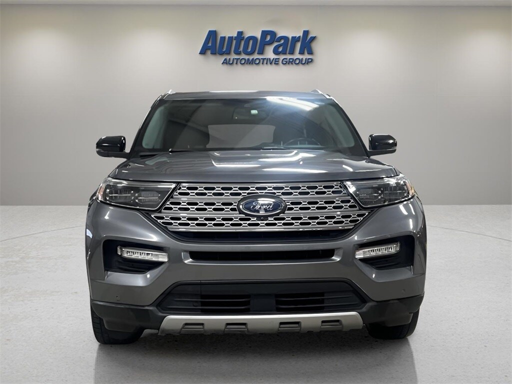Vehicle Is Equipped With Equipment Group 301A, Limited Convenience Package (110V/150W AC Power Outlet, 3rd Row PowerFold Seat, Hands-Free Foot-Activated Liftgate, Memory Driver's Seat, Power Tilt/Telescoping Steering Column, and Sideview Mirrors w/Gloss Black Caps), Explorer Limited, 4D Sport Utility, 2.3L EcoBoost I-4, 10-Speed Automatic, 4WD, Carbonized Gray Metallic, Ebony w/Leather Heated/Ventilated Captain's Chairs, Navigation System, 12 Speakers, 20" Premium Painted Aluminum Wheels, 3.58 Non-Limited-Slip Rear Axle Ratio, 3rd row seats: bench, 4-Wheel Disc Brakes, ABS brakes, Air Conditioning, Alloy wheels, AM/FM radio: SiriusXM, Auto High-beam Headlights, Auto-dimming Rear-View mirror, Automatic temperature control, Brake assist, Bumpers: body-color, Compass, Delay-off headlights, Driver door bin, Driver vanity mirror, Dual front impact airbags, Dual front side impact airbags, Electronic Stability Control, Emergency communication system: SYNC 3 911 Assist, Exterior Parking Camera Rear, FordPass Connect, Four wheel independent suspension, Front anti-roll bar, Front Bucket Seats, Front Center Armrest, Front dual zone A/C, Front fog lights, Front reading lights, Fully automatic headlights, Garage door transmitter: HomeLink, Heated & Cooled Seats, Heated door mirrors, Heated rear seats, Heated steering wheel, Illuminated entry, Knee airbag, Leather Heated/Ventilated Captain's Chairs, Leather steering wheel, Low tire pressure warning, Occupant sensing airbag, Outside temperature display, Overhead airbag, Overhead console, Panic alarm, Passenger door bin, Passenger vanity mirror, Power door mirrors, Power driver seat, Power Liftgate, Power passenger seat, Power steering, Power windows, Radio data system, Radio: B&O Sound System by Bang & Olufsen, Rain sensing wipers, Rear air conditioning, Rear anti-roll bar, Rear reading lights, Rear window defroster, Rear window wiper, Remote keyless entry, Roof rack: rails only, Security system, Speed control, Speed-sensing steering, Speed-Sensitive Wipers, Split folding rear seat, Spoiler, Steering wheel mounted audio controls, SYNC 3 Communications & Entertainment System, SYNC 3/Apple CarPlay/Android Auto, Tachometer, Telescoping steering wheel, Tilt steering wheel, Traction control,