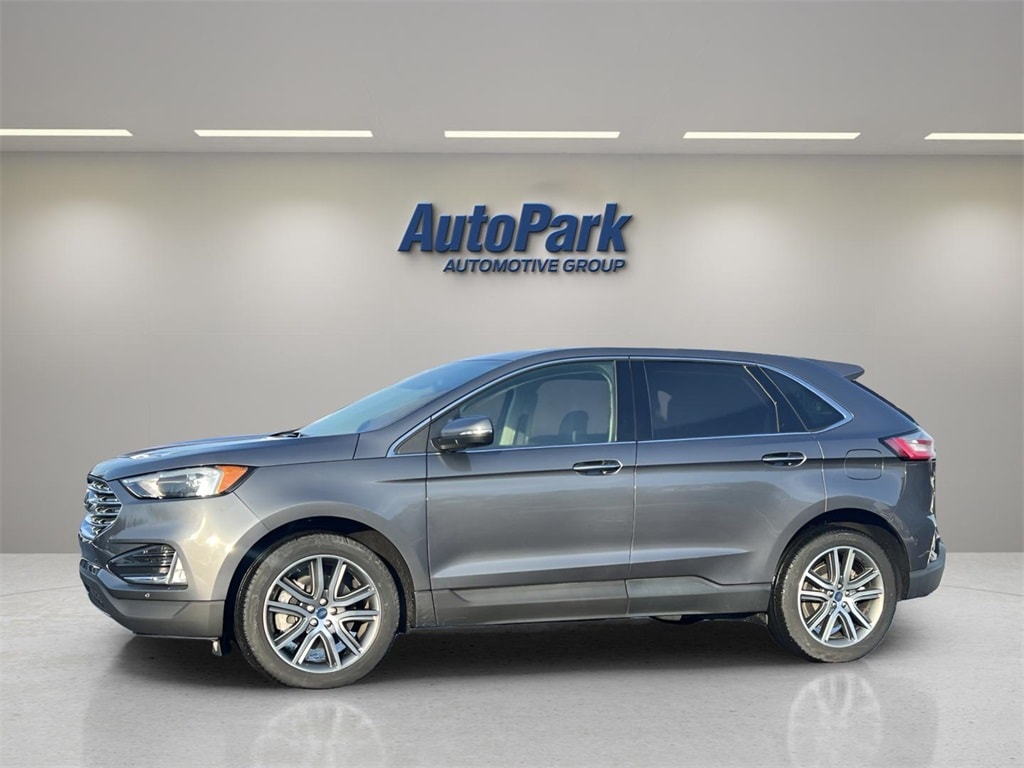 Vehicle Is Equipped With Class II Trailer Tow Package, Equipment Group 300A, Edge Titanium, 4D Sport Utility, EcoBoost 2.0L I4 GTDi DOHC Turbocharged VCT, 8-Speed Automatic, AWD, Carbonized Gray Metallic, Ebony w/Leather-Trimmed Heated Sport Bucket Seats, 12 Speakers, 3.80 Axle Ratio, 4-Wheel Disc Brakes, ABS brakes, Air Conditioning, Alloy wheels, AM/FM radio: SiriusXM with 360L, Auto High-beam Headlights, Auto-dimming Rear-View mirror, Automatic temperature control, Brake assist, Bumpers: body-color, Compass, Delay-off headlights, Driver door bin, Driver vanity mirror, Dual front impact airbags, Dual front side impact airbags, Electronic Stability Control, Emergency communication system: SYNC 4 911 Assist, FordPass Connect, Four wheel independent suspension, Front anti-roll bar, Front Bucket Seats, Front Center Armrest w/Storage, Front dual zone A/C, Front fog lights, Front reading lights, Fully automatic headlights, Garage door transmitter, Heated door mirrors, Heated steering wheel, Illuminated entry, Knee airbag, Leather-Trimmed Heated Sport Bucket Seats, Low tire pressure warning, Memory seat, Occupant sensing airbag, Outside temperature display, Overhead airbag, Overhead console, Panic alarm, Passenger door bin, Passenger vanity mirror, Power door mirrors, Power driver seat, Power Liftgate, Power passenger seat, Power steering, Power windows, Radio: B&O Sound System by Bang & Olufsen, Rain sensing wipers, Rear anti-roll bar, Rear reading lights, Rear seat center armrest, Rear window defroster, Rear window wiper, Remote keyless entry, Security system, SiriusXM w/360L, Speed control, Speed-Sensitive Wipers, Split folding rear seat, Spoiler, Steering wheel mounted audio controls, SYNC 4A w/Enhanced Voice Recognition, Tachometer, Telescoping steering wheel, Tilt steering wheel, Traction control, Trip computer, Turn signal indicator mirrors, Variably intermittent wipers, Wheels: 19" Luster Nickel-Painted Aluminum, and Wheels: 20" Bright-Machined Aluminum.