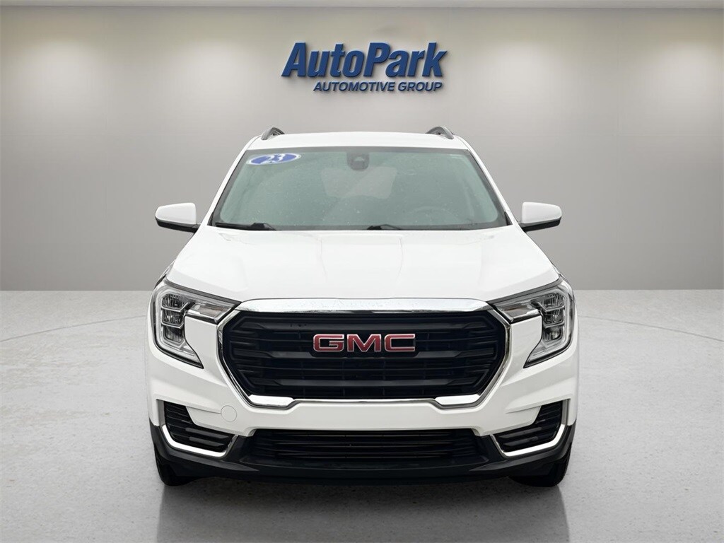 Vehicle Is Equipped With Cargo Package (LPO) (Retractable Cargo Shade and Vertical Cargo Net (LPO)), Driver Convenience Package (8-Way Power Driver Seat Adjuster, Driver & Front Passenger Heated Seats, Dual-Zone Automatic Climate Control, Power Driver Lumbar Control, Remote Start, and Roof-Mounted Luggage Rack Side Rails), Preferred Equipment Group 3SA, Side Blind Zone & Rear Cross Traffic (Lane Change Alert w/Side Blind Zone Alert and Rear Cross-Traffic Alert), Terrain Pro Safety Plus (Adaptive Cruise Control, Outside Heated Power-Adjustable Mirrors, Rear Park Assist, and Safety Alert Seat), AWD, 2 USB Data Ports w/Auxiliary Input Jack, 3.47 Axle Ratio, 4-Way Manual Driver's Seat, 4-Way Manual Front Passenger Seat, 4-Wheel Disc Brakes, 4.2" Multi-Color Driver Information Screen, 6 Speakers, 6-Speaker Audio System Feature, ABS brakes, Air Conditioning, Alloy wheels, AM/FM radio: SiriusXM, Auto High-beam Headlights, Auto-dimming Rear-View mirror, Bluetooth® For Phone, Brake assist, Bumpers: body-color, Compass, Delay-off headlights, Deleted 3 Years of OnStar & Connected Services Plan, Driver door bin, Driver vanity mirror, Dual front impact airbags, Dual front side impact airbags, Electronic Stability Control, Emergency communication system: OnStar and GMC connected services capable, Four wheel independent suspension, Front anti-roll bar, Front Bucket Seats, Front Center Armrest, Front reading lights, Fully automatic headlights, Heated door mirrors, Illuminated entry, Lane Departure Warning System, Low tire pressure warning, Occupant sensing airbag, Outside temperature display, Overhead airbag, Overhead console, Panic alarm, Passenger door bin, Passenger vanity mirror, Power door mirrors, Power Programmable Rear Liftgate, Power steering, Power windows, Premium Cloth Seat Trim, Radio data system, Radio: GMC Infotainment Audio System w/7" Display, Rear anti-roll bar, Rear seat center armrest, Rear window defroster, Rear window wiper, Remote keyless entry, Security system, SiriusXM Radio, Speed control, Speed-sensing steering, Split folding rear seat, Spoiler, Steering wheel mounted audio controls, Tachometer, Telescoping steering wheel, Tilt steering wheel, Traction control, Trip co