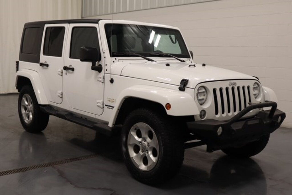 2015 Jeep Wrangler Bright White Clearcoat Unlimited Sahara 4WD ACCIDENT FREE VEHICLE HISTORY, LOCAL TRADE, NON-SMOKER, Wrangler Unlimited Sahara, 4WD, 18" x 7.5" Polished Satin Carbon Wheels, 40GB Hard Drive w/28GB Available, 6.5" Touch Screen Display, Air Conditioning w/Auto Temperature Control, Air Filtering, Alloy wheels, Audio Jack Input for Mobile Devices, Connectivity Group, Electronic Stability Control, Front fog lights, Fully automatic headlights, GPS Navigation, Heated door mirrors, Humidity Sensor, Power door mirrors, Quick Order Package 24G, Radio: Uconnect 430N CD/DVD/MP3/HDD/NAV, Remote keyless entry, Remote USB Port, SIRIUSXM Travel Link, Steering wheel mounted audio controls, Tire Pressure Monitoring Display, Vehicle Information Center.