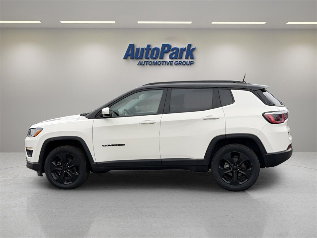 Vehicle Is Equipped With Cold Weather Group (All-Season Floor Mats, Heated Front Seats, Heated Steering Wheel, Reversible Carpet/Vinyl Cargo Mat, and Windshield Wiper De-Icer), Quick Order Package 2GB Altitude (Altitude Special Edition, Black 4x4 Tailgate Badge, Black Day Light Opening Moldings, Black Grille w/Black Rings, Black Roof, Bright Exhaust Tip, Gloss Black Compass Badge, Gloss Black Fog Lamp Bezels, Gloss Black Jeep Badge, Gloss Black Lower Rear Fascia Valance, Piano Black Interior Accents, and Wheels: 18" x 7.0" Black Aluminum), Compass Altitude, 4D Sport Utility, 2.4L I4, 9-Speed 948TE Automatic, 4WD, White Clearcoat, Black w/Cloth Low-Back Bucket Seats, 3.833 Axle Ratio, 4-Wheel Disc Brakes, 6 Speakers, ABS brakes, Air Conditioning, Alloy wheels, AM/FM radio: SiriusXM, Anti-whiplash front head restraints, Apple CarPlay, Apple CarPlay/Android Auto, Automatic temperature control, Bluetooth® Streaming Audio, Brake assist, Bumpers: body-color, Compass, Delay-off headlights, Driver door bin, Driver vanity mirror, Dual front impact airbags, Dual front side impact airbags, Electronic Stability Control, Four wheel independent suspension, Front anti-roll bar, Front Bucket Seats, Front Center Armrest w/Storage, Front dual zone A/C, Front fog lights, Front License Plate Bracket, Front reading lights, Fully automatic headlights, Google Android Auto, GPS Antenna Input, Heated door mirrors, Illuminated entry, Knee airbag, Low tire pressure warning, Media Hub (USB, AUX), Occupant sensing airbag, Outside temperature display, Overhead airbag, Overhead console, Panic alarm, ParkView Rear Back-Up Camera, Passenger door bin, Passenger vanity mirror, Power door mirrors, Power steering, Power windows, Premium Cloth/Vinyl Bucket Seats, Radio: Uconnect 4 w/7" Display, Rear anti-roll bar, Rear seat center armrest, Rear window defroster, Rear window wiper, Remote keyless entry, Roof rack: rails only, Speed control, Split folding rear seat, Spoiler, Steering wheel mounted audio controls, Tachometer, Telescoping steering wheel, Tilt steering wheel, Traction control, Trip computer, USB Host Flip, Variably intermittent wipers, and Wheels: 17" x 7.0" Silver Painted Aluminum.