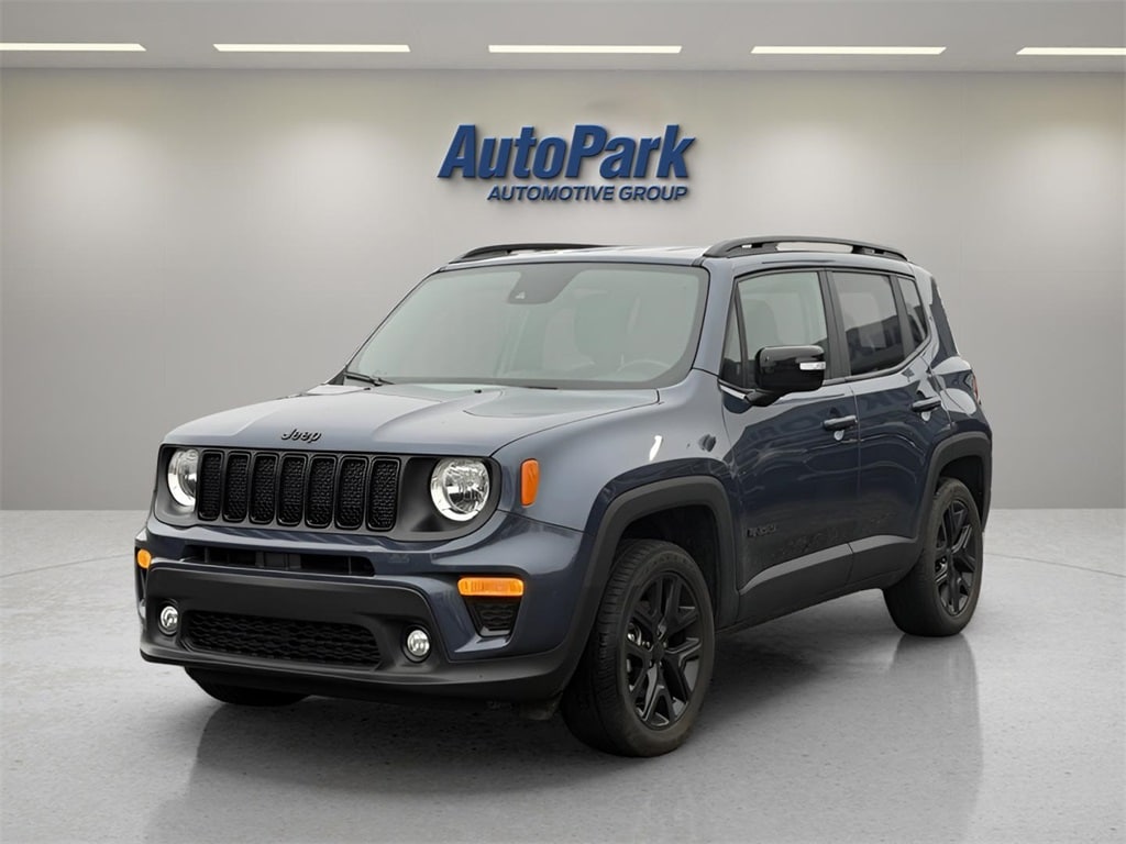 Vehicle Is Equipped With Altitude Package, Convenience Group (115V Auxiliary Power Outlet, 40/20/40 Rear Seat w/Trunk Pass-Thru, Auto-Dimming Rear-View Mirror, Heated Front Seats, Heated Steering Wheel, Power 2-Way Driver Lumbar Adjust, Power Adjust 8-Way Driver Seat, Rain Sensitive Windshield Wipers, and Windshield Wiper De-Icer), Quick Order Package 22M Altitude (Black Accent Stitching, Black Headliner, Deluxe Cloth High-Back Bucket Seats, Gloss Black Exterior Accents, Gloss Black Steering Wheel Bezel, and Wheels: 18" x 8.0" Gloss Black), Renegade Latitude Altitude, 4D Sport Utility, 1.3L I4, 9-Speed 948TE Automatic, 4WD, Slate Blue Pearlcoat, Black w/Premium Cloth Bucket Seats or Deluxe Cloth High-Back Bucket Seats, Navigation System, 3.734 Final Drive Ratio, 4-Wheel Disc Brakes, 6 Speakers, ABS brakes, Air Conditioning, Alloy wheels, AM/FM radio: SiriusXM, Anti-whiplash front head restraints, Apple CarPlay/Android Auto, Automatic temperature control, Brake assist, Compass, Delay-off headlights, Driver door bin, Driver vanity mirror, Dual front impact airbags, Dual front side impact airbags, Electronic Stability Control, Emergency communication system: SiriusXM Guardian, Four wheel independent suspension, Front anti-roll bar, Front Bucket Seats, Front Center Armrest, Front dual zone A/C, Front fog lights, Front reading lights, Fully automatic headlights, Heated door mirrors, Illuminated entry, Knee airbag, Low tire pressure warning, Normal Duty Suspension, Occupant sensing airbag, Outside temperature display, Overhead airbag, Panic alarm, ParkView Rear Back-Up Camera, Passenger door bin, Passenger vanity mirror, Power door mirrors, Power steering, Power windows, Premium Cloth Bucket Seats, Radio data system, Radio: Uconnect 4C Nav w/8.4" Display, Rear anti-roll bar, Rear window defroster, Rear window wiper, Remote keyless entry, Roof rack: rails only, Security system, Speed control, Split folding rear seat, Spoiler, Steering wh