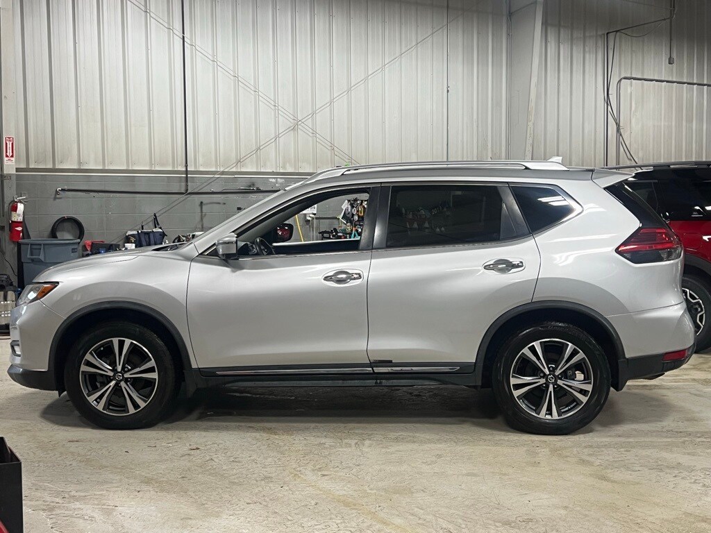 Vehicle Is Equipped With Rogue SL, 4D Sport Utility, 2.5L I4 DOHC 16V, CVT with Xtronic, FWD, Brilliant Silver, Charcoal w/Leather Appointed Seat Trim, Navigation System, 18" Alloy Wheels, 4-Wheel Disc Brakes, 5.694 Axle Ratio, 9 Speakers, ABS brakes, Air Conditioning, Alloy wheels, AM/FM radio: SiriusXM, Anti-whiplash front head restraints, Auto High-beam Headlights, Auto-dimming Rear-View mirror, Automatic temperature control, Black Splash Guards (Set of 4), Blind Spot Warning, Brake assist, Bumpers: body-color, CD player, Delay-off headlights, Driver door bin, Driver vanity mirror, Dual front impact airbags, Dual front side impact airbags, Electronic Stability Control, Emergency communication system: NissanConnect Services, Floor Mats & 2-PC Cargo Area Protector, Four wheel independent suspension, Front anti-roll bar, Front Bucket Seats, Front Center Armrest w/Storage, Front dual zone A/C, Front fog lights, Front reading lights, Fully automatic headlights, Garage door transmitter: HomeLink, Heated & Cooled Seats, Heated door mirrors, Heated steering wheel, Illuminated entry, Leather Appointed Seat Trim, Leather Shift Knob, Low tire pressure warning, Memory seat, Occupant sensing airbag, Outside temperature display, Overhead airbag, Overhead console, Panic alarm, Passenger door bin, Passenger vanity mirror, Power door mirrors, Power driver seat, Power Liftgate, Power steering, Power windows, Quick Comfort Heated Front Bucket Seats, Radio data system, Rear anti-roll bar, Rear seat center armrest, Rear window defroster, Rear window wiper, Remote keyless entry, Roof rack: rails only, Security system, Speed control, Speed-sensing steering, Split folding rear seat, Spoiler, Steering wheel mounted audio controls, Tachometer, Telescoping steering wheel, Tilt steering wheel, Traction control, Trip computer, Turn signal indicator mirrors, and Variably intermittent wipers.