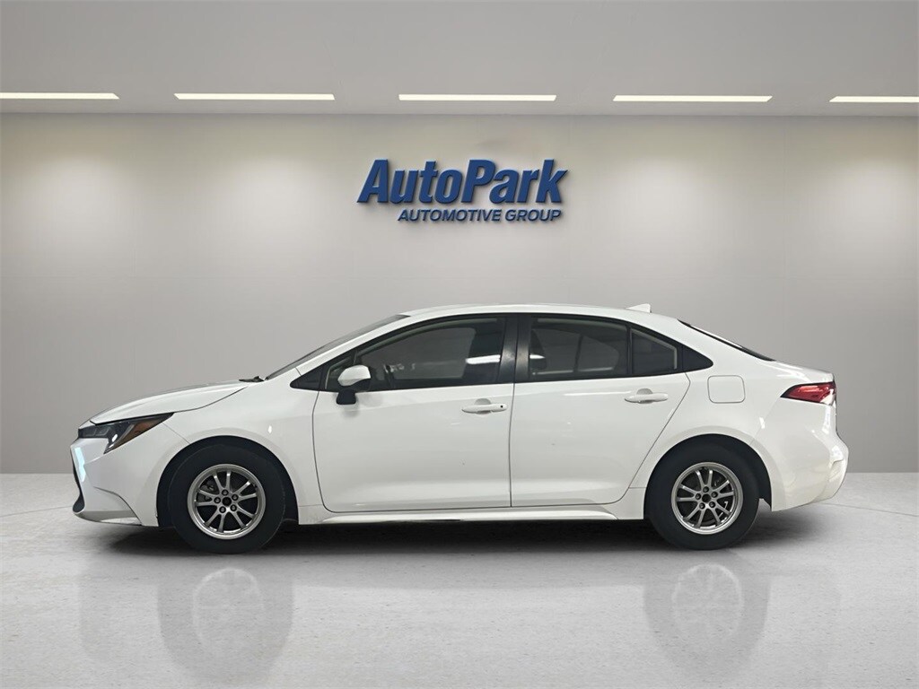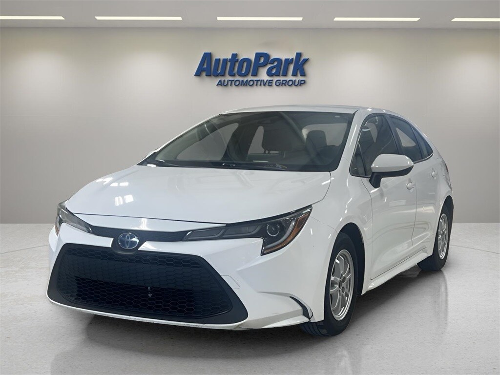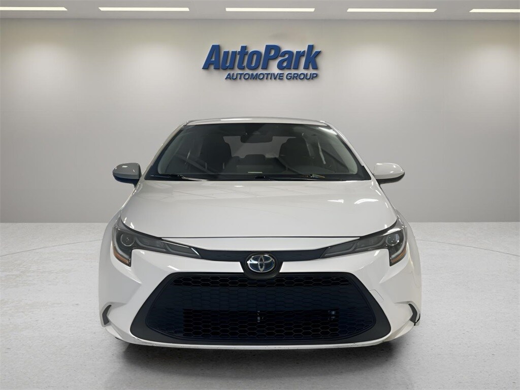 Vehicle Is Equipped With Corolla Hybrid LE, 4D Sedan, 1.8L DOHC 16V VVT, CVT, FWD, White, Light Gray w/Premium Fabric Seat Trim, 4-Wheel Disc Brakes, 6 Speakers, ABS brakes, Air Conditioning, Alloy wheels, AM/FM radio: SiriusXM, Apple CarPlay/Android Auto, Auto High-beam Headlights, Automatic temperature control, Brake assist, Bumpers: body-color, Delay-off headlights, Driver door bin, Driver vanity mirror, Dual front impact airbags, Dual front side impact airbags, Electronic Stability Control, Emergency communication system: Safety Connect with 1-year trial, Exterior Parking Camera Rear, Four wheel independent suspension, Front anti-roll bar, Front Bucket Seats, Front Center Armrest, Front reading lights, Fully automatic headlights, Heated door mirrors, Illuminated entry, Knee airbag, Low tire pressure warning, Occupant sensing airbag, Outside temperature display, Overhead airbag, Panic alarm, Passenger door bin, Passenger vanity mirror, Power door mirrors, Power steering, Power windows, Premium Fabric Seat Trim, Radio data system, Radio: Audio AM/FM, Rear anti-roll bar, Rear seat center armrest, Rear side impact airbag, Rear window defroster, Remote keyless entry, Security system, Speed control, Split folding rear seat, Steering wheel mounted audio controls, Tachometer, Telescoping steering wheel, Tilt steering wheel, Traction control, Trip computer, Variably intermittent wipers, and Wheels: 15" Alloy w/Cover.
